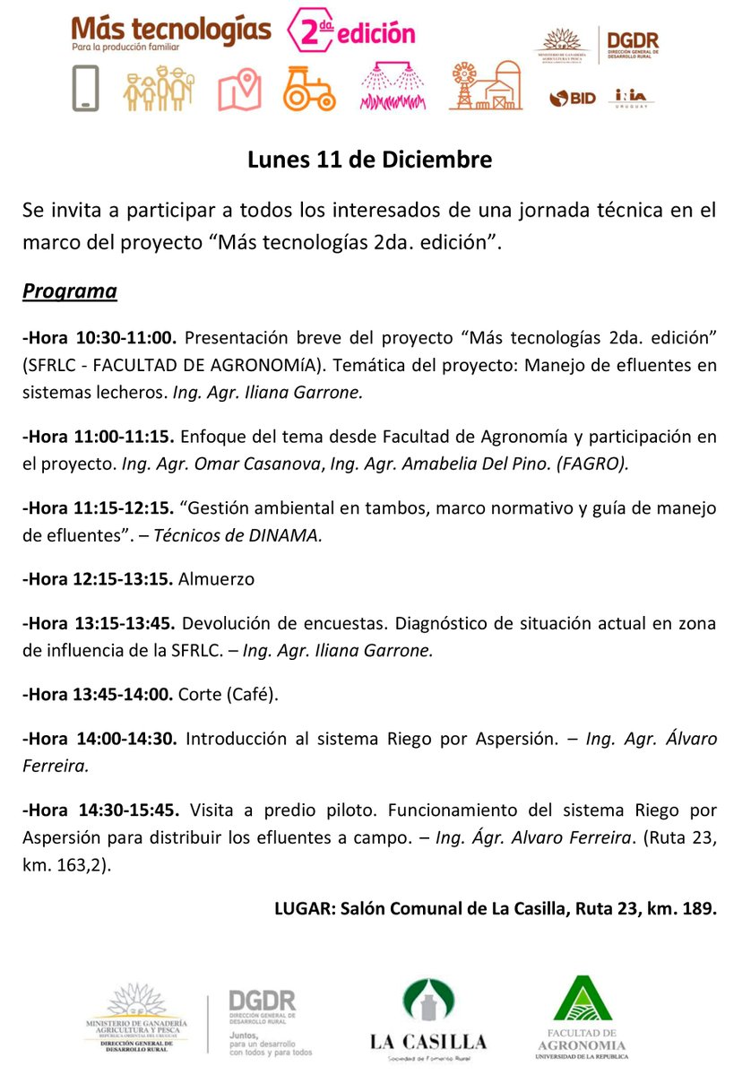 Mañana desde las 10:30 en el Salón Comunal de La Casilla, se desarrollará la jornada técnica «Mas tecnologias» en su segunda edición.