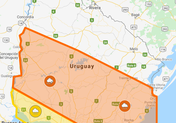 El Instituto Uruguayo de Meteorología emitió una alerta de color naranja que afecta a todo el departamento y por ende a nuestra localidad.